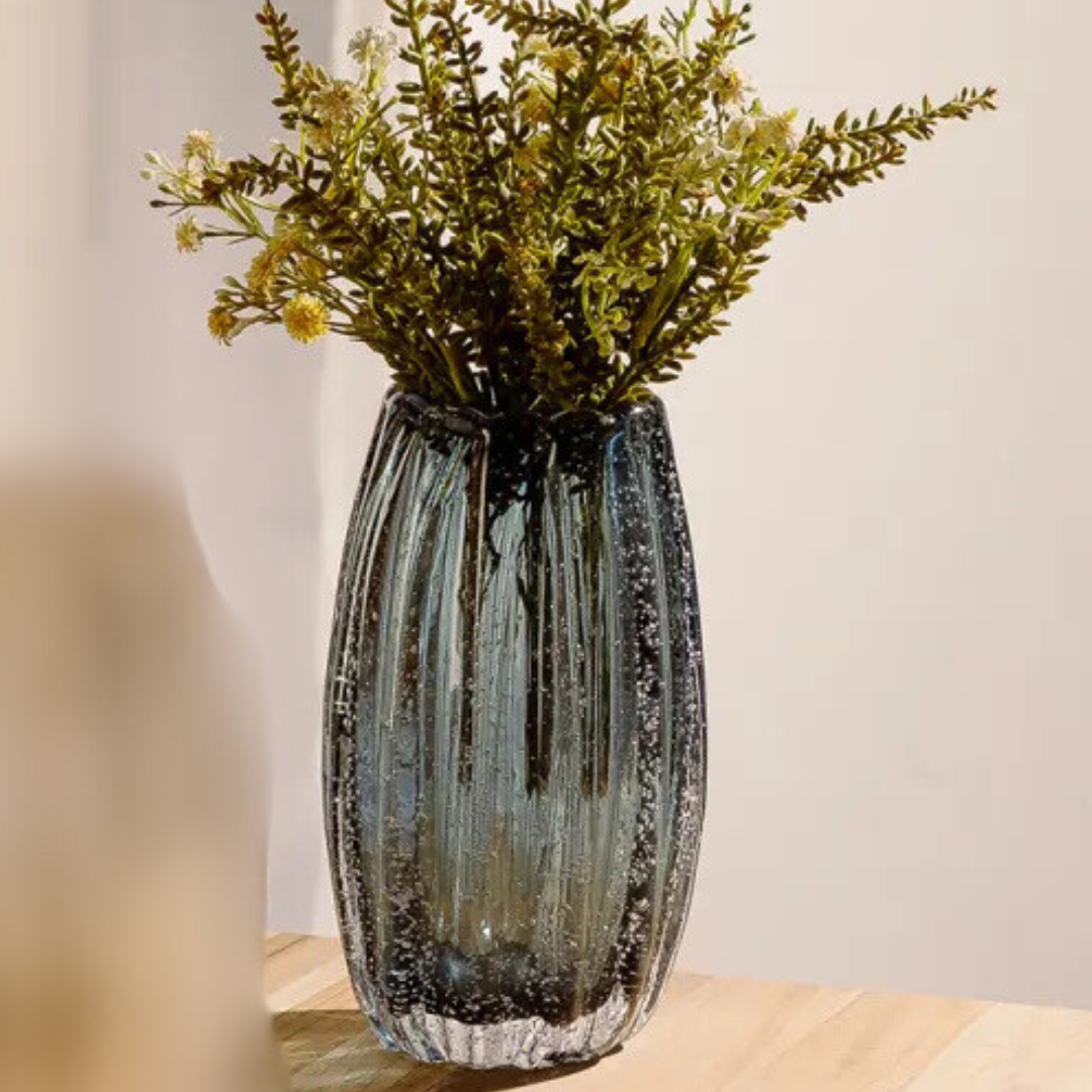 A tonalidade refinada do Vaso de Vidro Italy Tipo Murano Azul cria um ponto focal elegante, proporcionando uma atmosfera de serenidade e estilo.